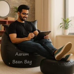 Faux Leather Xxl Pear Shape 3pcs Combo Bean Bag – Black