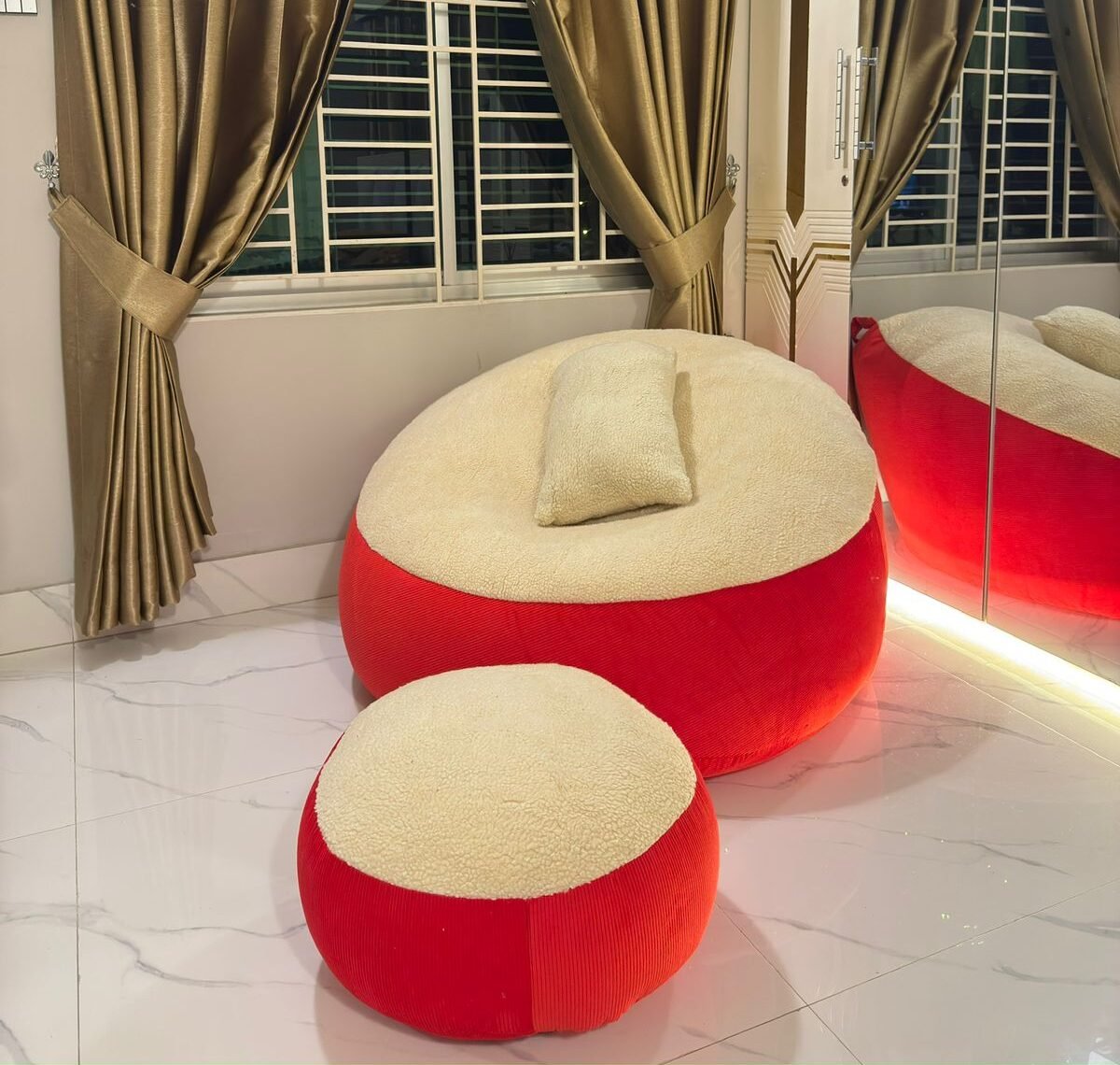 *Filler: Premium quality Taiwanese 3-5mm size eps beans filler for bean bag and footrest.Korean Polyfiber for cushion filling.